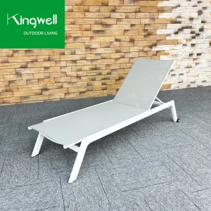Outdoor Aluminum Frame Fabric Lounge Chaise Waterproof Textilene Sun Lounger